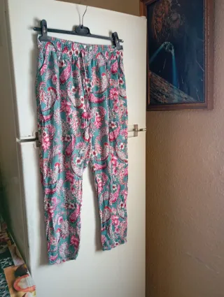 Tienen la etiqueta, sin estrenar. Son una S (36) pero son anchitos. Muy bonitos para verano. Cintura elástica. Bolsillos laterales.