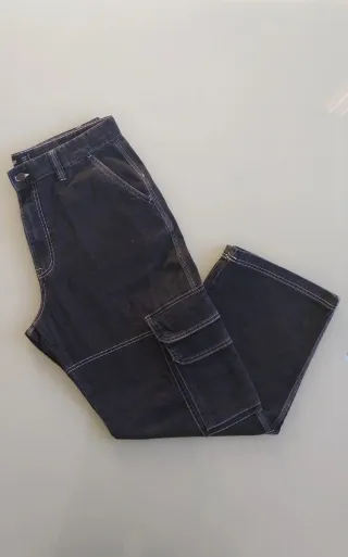 Pantalón Stradivarius de jean para mujer en excelente estado. Diseño moderno y versátil. - Corte recto. - Tiro alto. - Cierre de botones.
