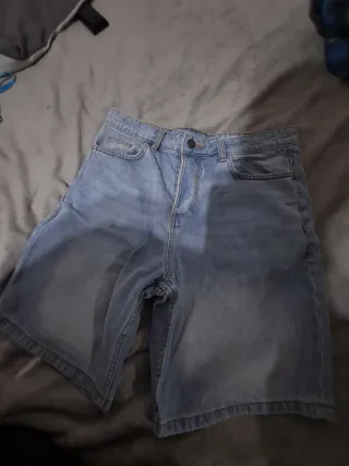 Pantalones cortos vaqueros de color azul claro. Son cómodos y versátiles. - Cintura con trabillas para cinturón. - Cierre de botón y cremallera. - Bolsillos delanteros y traseros.