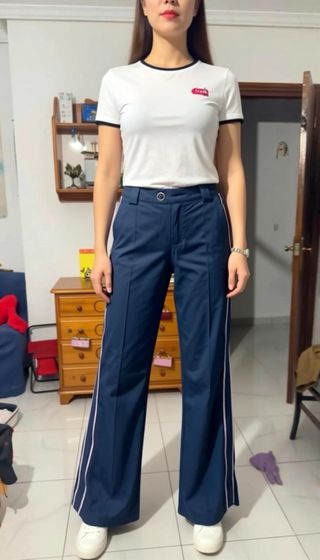 Pantalón ancho deportivo azul con detalles