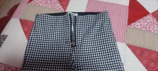 Pantalón de mujer ajustado con estampado de cuadros. - Diseño de cuadros blancos y negros. - Detalle de raya lateral. - Cintura elástica - Medidas de cintura y pierna en fotos. Talla: M Springfield