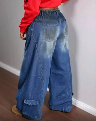 Pantalones vaqueros de estilo Y2k, con un corte ancho y holgado. - Diseño baggy. - Estampado detallado en bolsillos y parte trasera. - Tiro bajo.