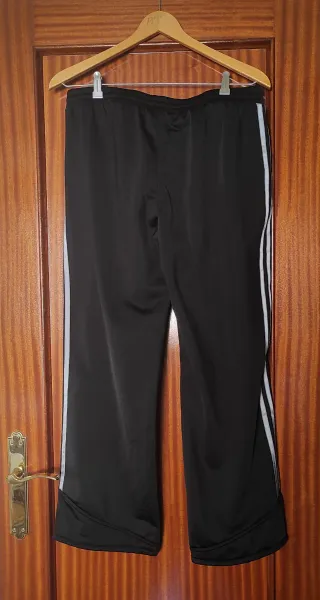 Pantalón deportivo Adidas negro, rayas laterales gris plata