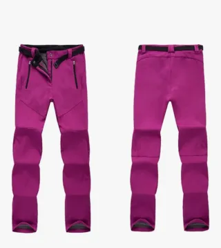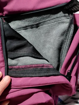 Pantalón de senderismo elástico en tono morado y con forro cálido interior. - Cintura con cinturón ajustable y dos bolsillos frontales con cremallera. Lo vendo porque me queda grande.