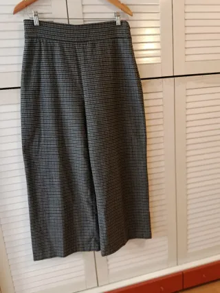 Pantalones de corte ancho con estampado de cuadros. - Diseño de Zara. - Combinación de colores negro y gris.
