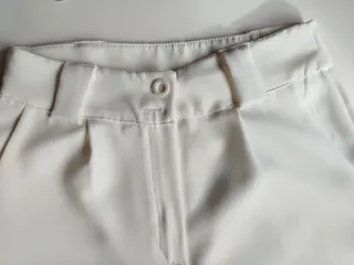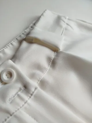 Pantalón de vestir elegante en color blanco. Ideal para ocasiones formales o un look sofisticado. - Cierre con botón y cremallera. - Bolsillos funcionales. - Tejido fino.