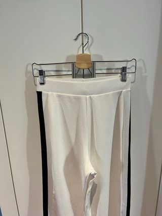 Pantalón de la marca Zara con un diseño moderno y elegante. - Color blanco con banda lateral negra. - Talla S.