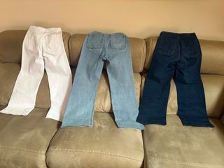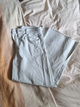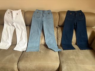 Conjunto de tres pantalones Stradivarius.Modelo D77 - Pantalón blanco,medida de largo 91 cm - Pantalón vaquero claro, medida de largo 99 cm - Pantalón vaquero oscuro, medida de largo 91,5cm