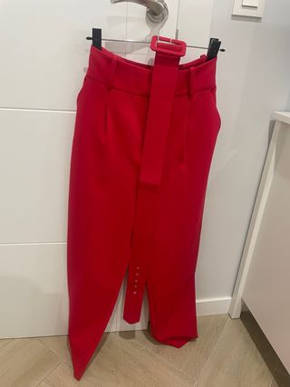 Pantalones de vestir ZARA en color rojo, con cinturón a juego. - Diseño de talle alto. - Cinturón con hebilla cuadrada. - Detalle de botones en la pernera. Tambien los vendo por separado a 10€ cada uno.