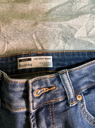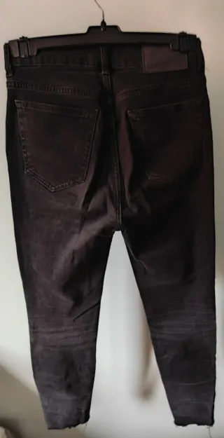 Pantalones vaqueros de corte ajustado. - Diseño de tiro alto. - Cierre de botones. - Bolsillos delanteros y traseros. - Efecto desgastado. 📦 Se envía con cuidado, limpio y listo para enamorar. ¿Tienes dudas o quieres más fotos? ¡No dudes en preguntar! 😊