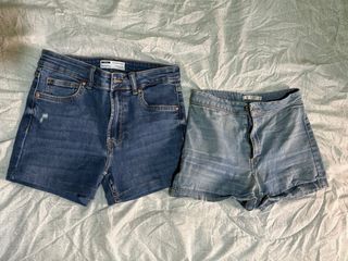 - Dos pantalones cortos de color azul claro con efecto lavado. - Un pantalón corto de color negro - Diseño de tiro corto.