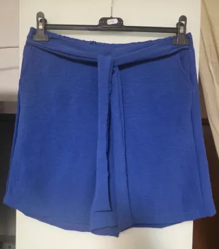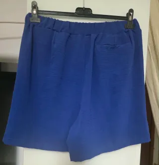 Pantalones cortos de tela en color gris Tienen un diseño moderno y son cómodos. - Cadera 58 cm. - Cintura 48 cm. - Largo 40 cm. - Cintura con trabillas y botones. - Bolsillos laterales. - Dobladillo en los bajos.