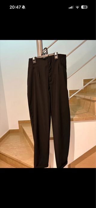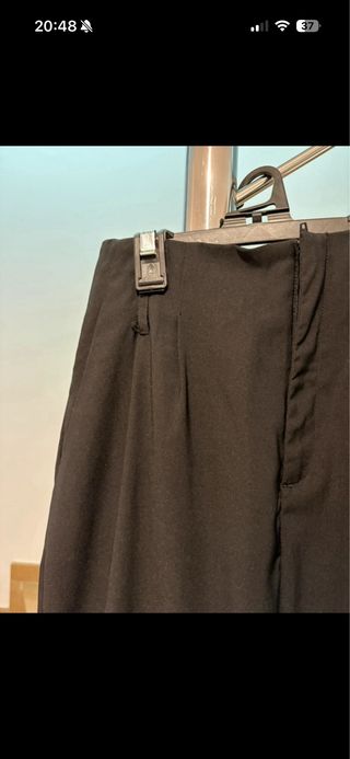 Pantalones de Staradivarius de vestir negros de corte ancho. - Diseño de pierna ancha. - Incluye cinturón a juego. - Cintura alta. Estan sin estrenar y en perfecto estado. Me confundí de modelo al comprarlos y ya les había quitado la etiqueta.