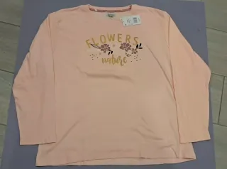 Conjunto de pijama para mujer, ideal para entretiempo. Talla 4XL. 100% algodón CIERRE NEGOCIO. - Estampado floral en los pantalones. - Detalle de texto y flores en la parte delantera de la camiseta.