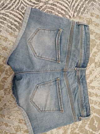 Pantalón vaquero corto de mujer. - Diseño clásico. - Cintura con trabillas. - Cierre de cremallera y botón. - Bolsillos delanteros y traseros. Muy poco utilizado en perfectas condiciones muy bonito