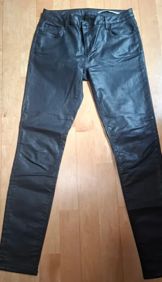 Pantalón con acabado que imita la piel. - Diseño de cinco bolsillos. - Cierre de cremallera y botón. - Corte ajustado.