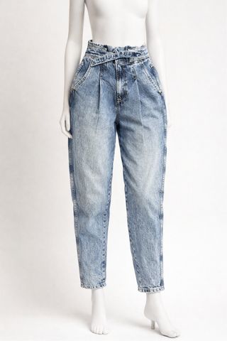 Pantalón vaquero de la marca Pepe Jeans, con un diseño moderno y favorecedor. - Cintura alta con cinturón anudado. - Piernas amplias y tapered. - Bolsillos delanteros y traseros. - Lavado desgastado.