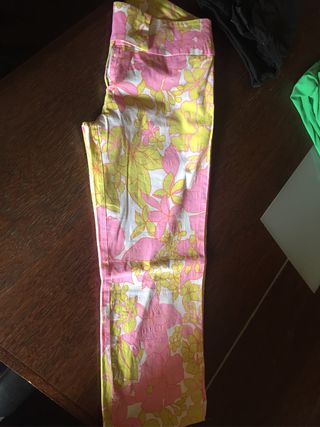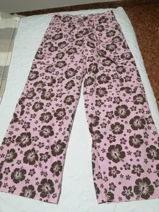 Pantalones con un estampado floral vibrante.es talla L, da menos talla, ver medida, Nuevos - Diseño con flores en tonos rosa y amarillo. -