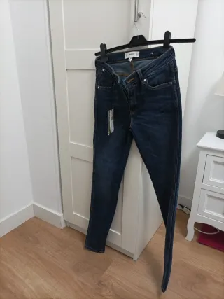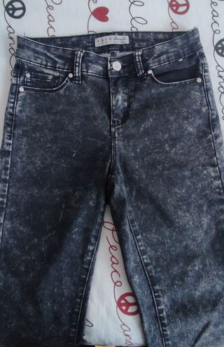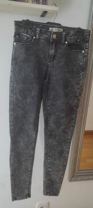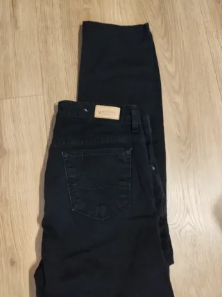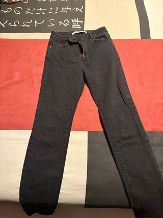 Pantalon vaquero elástico de color negro, talla 36. Ajuste ceñido. En perfecto estado.
