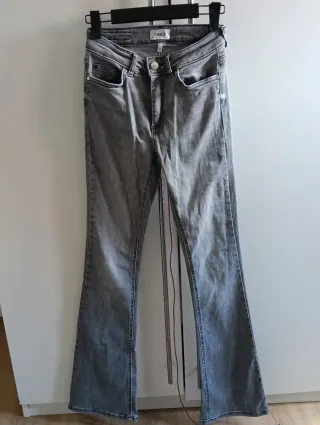 Pantalones vaqueros de corte acampanado. - Color gris - Marca Only - Diseño de cinco bolsillos - Cierre de cremallera y botón