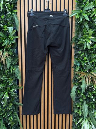 Pantalones de montaña para mujer de la marca Trespass en color negro. Diseñados para actividades al aire libre. - Cintura con cierre de botón y cremallera. - Bolsillos frontales con cremallera. - Cremalleras en los bajos de las perneras.