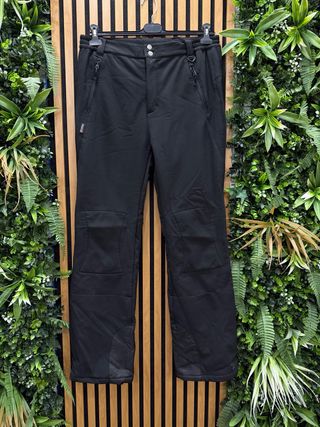 44 cm de cintura ( elástica) Largo 111 cm Pantalones de nieve para mujer, ideales para actividades de montaña. - Diseño en color negro. - Cintura elástica. - Cremalleras en los bolsillos.