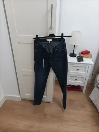 Pantalón vaquero de corte ajustado. - Color azul oscuro. - Cierre de cremallera y botón. - Bolsillos delanteros y traseros.
