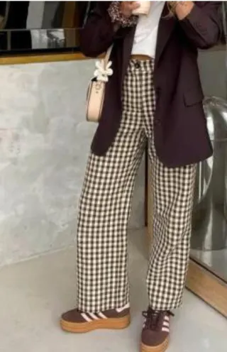 Pantalon de cuadros Vichy color café. Un diseño clásico y versátil. - Nuevo a estrenar. - Talla L - Cintura alta con botones.