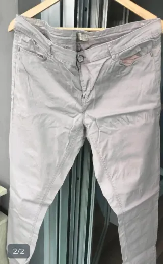 En perfecto estado, son elásticos, tienen una abertura en los bajos por lo que queda más ancho en esa parte dando sensación de acampanados