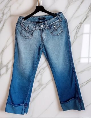 Pantalón vaquero de corte tobillero. Diseño desgastado. Flor bordada en el bolsillo derecho. Dobladillo en los bajos. Marca Clockhouse. 2 bolsillos delanteros y 1 pequeño, 2 traseros. Material: 78% algodón 20% poliéster. Medidas: 36 cm ancho cintura (72 cm contorno entero) x 76 cm largo x 22 cm ancho pernera (44 cm suma). Recoger en San José, Aragonia,Parquegrande si eres de Zaragoza.