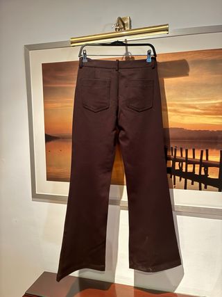 Pantalón de corte acampanado en color marrón chocolate con etiqueta