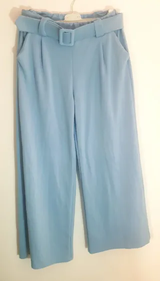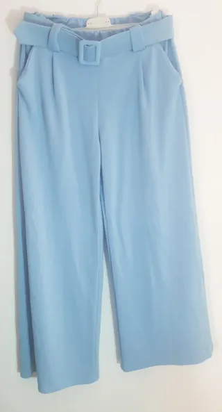 Pantalón de corte ancho en color azul. Presenta un cinturón a juego. - Cintura elástica. - Bolsillos laterales.