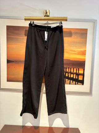 Pantalón de chándal negro de la marca Lft, con la etiqueta puesta. - Cintura elástica con cordón ajustable. - Piernas anchas y rectas. - Tejido suave y cómodo.