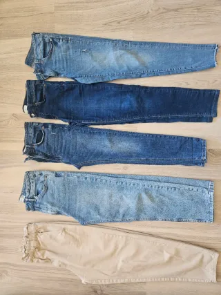 Conjunto de cinco pantalones vaqueros para mujer. - Talla 40 (L). - Tejido de algodón. - Diseños cómodos.