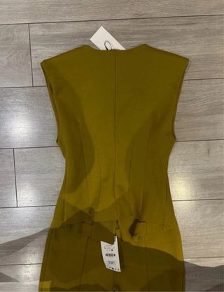 Conjunto de dos piezas formado por un chaleco y un pantalón. - Chaleco con botones. - Pantalón de campana, verde pistacho, es elástico y por lo tanto se ajusta al cuerpo, súper bonito,combinable, para bodas, bautizos y demás eventos.
