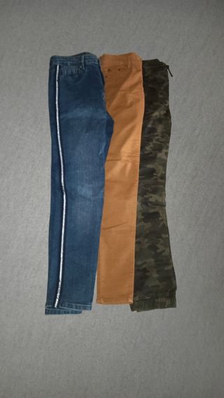 Lote de pantalones niña. Pantalones militares talla 13-14. Pantalones color camel talla 36. Pantalones vaqueros talla 36/38. Los tres pantalones por 8€, uno individual 3€.