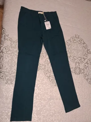 Pantalones chinos de color azul, en buen estado. - Corte recto. - Dos bolsillos delanteros. - Dos bolsillos traseros con botón. - Cierre con botón y cremallera. talla 16