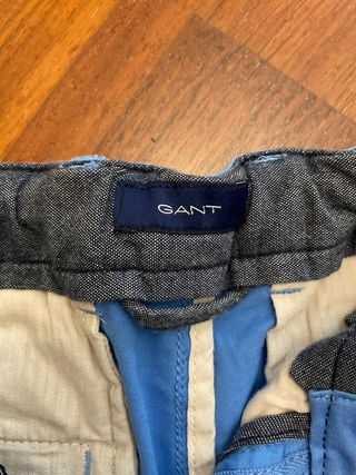 Gant de tela azul para niño, perfectos para cualquier ocasión. - Cintura con trabillas para cinturón. - Cierre de botón y cremallera. - Bolsillos laterales. - Largo hasta la rodilla.