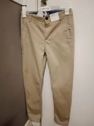 Pantalón tipo chino para niño, ideal para un look casual o más arreglado. - Corte slim fit. - Cierre con botón y cremallera. - Bolsillos delanteros y traseros.