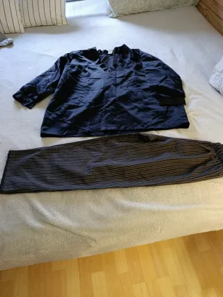 Traje casero para niño de 10 años aunque yo creo que da talla para más también - Top negro satinado con cuello - Pantalón gris a rayas Está en perfecto estado