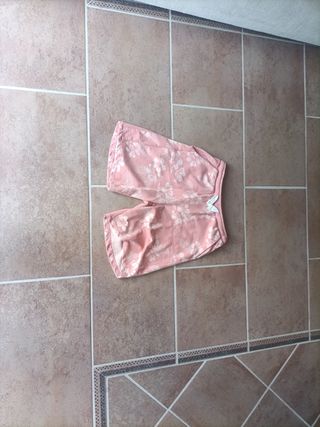 Pantalón corto para niño, talla 11-12. Es de color rosa y tiene un estampado de flores. Está en buen estado. - Diseño con estampado floral. - Cintura elástica.