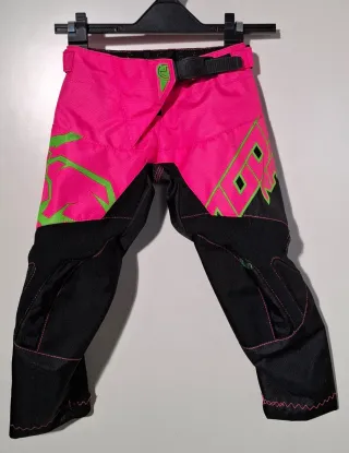 Pantalón de motocross para niñas diseño actual solo tenemos el pantalón por eso el precio es mu bajo. - Parte superior en color rosa vibrante. - Zona inferior en negro. - Detalles gráficos en verde lima. - Cintura ajustable. Talla 22 (pongo medidas en fotos ) precio bajo costo por cierre de actividad. El pantalón es nuevo a estrenar