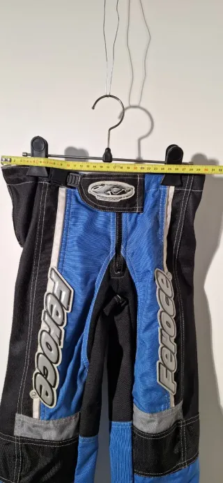 Pantalón de motocross para niños no se ha usado pero lo parece porque ha estado mucho tiempo en exposición. - Combinación de colores azul y negro. - Detalles en blanco y gris. - Cintura ajustable. Precio bajo costo por cierre de actividad.