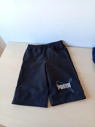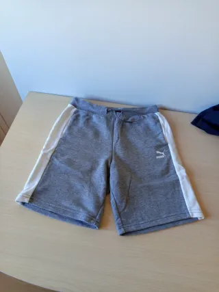 Pantalón niño corto Puma gris/blanco. Talla 11/12