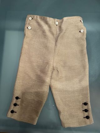 Pantalón estilo Torrentí para niño, ideal para eventos o disfraces. - Tejido de terciopelo. - Detalle de botones en los bajos. - Forro blanco en los bajos con cordones. MEDIDAS Cintura a final : 61 cm Cintura: 69 cm