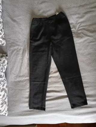 4 Pantalones de vestir para niña de la marca Zara. - Color gris jaspeado y negro. - Tallas 9 y 10. - Cintura con trabillas para cinturón. - Bolsillos delanteros.