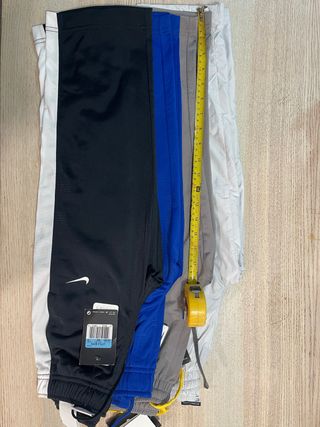 Pantalones deportivos Nike para niño. Nuevos (con etiqueta) y originales (yo trabajé en la tienda Nike). Compré 8 pantalones que estaban liquidando y vendo 5 de ellos porque no los puede usar en el cole y se le van a quedar pequeños. Hay dos iguales (los grises claritos) Talla S de niño (equivalente a 6-8 años). 8 años si el niño es bajito. Un niño alto de 5 años los puede usar. Miden 46cm desde la ingle hasta el borde del pantalón. 1 pantalón 12€. Los 5 pantalones 50€.