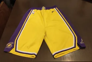 Pantalón corto de baloncesto de los Lakers. - Diseño con los colores del equipo. - Talla L de niño. - Usado muy poco, está impecable. - Logo de la NBA. - Logo de los Lakers.