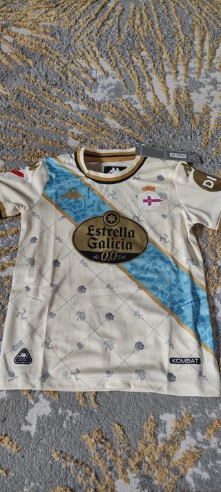 Conjunto 3era equipación del Deportivo da Coruña para niñ@s. - Camiseta de manga corta. - Pantalón corto. - Diseño con detalles dorados y banda azul. - Se hacen envíos , también entrega en mano.