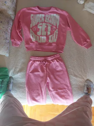 Conjunto deportivo de dos piezas para niña, ideal para estar cómoda. - Sudadera con estampado SUPER READY SET AND GO. - Pantalón largo con cintura elástica y cordón. - Talla 6-7 años.